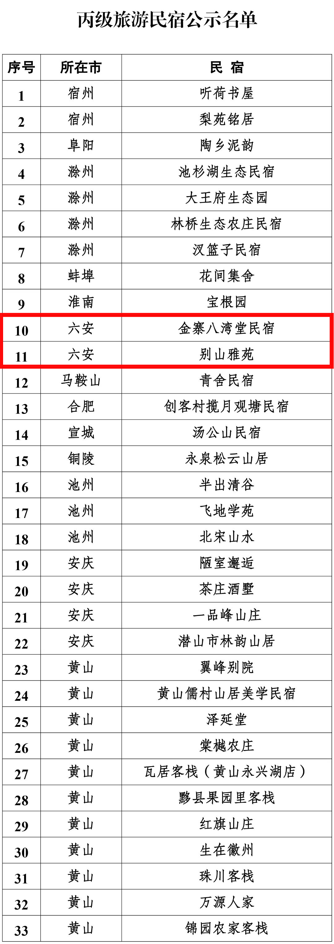安徽省旅游星級飯店暨旅游等級民宿
