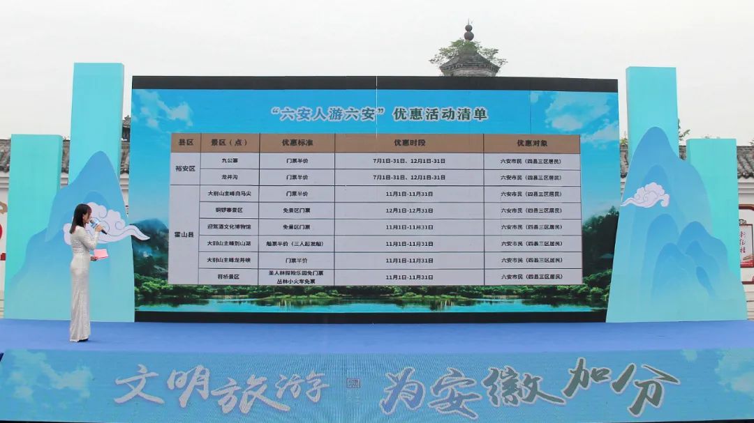 活動現(xiàn)場宣布了“六安人游六安”優(yōu)惠活動正式啟動。即日起,天堂寨、萬佛湖、大別山主峰等景區(qū)將面向六安市民(四縣三區(qū)居民)開展半價游、免門票等優(yōu)惠活動,此次優(yōu)惠活動將一直持續(xù)至年底,讓六安人能夠深度體驗家鄉(xiāng)的美食、美景,共享文旅發(fā)展成果。