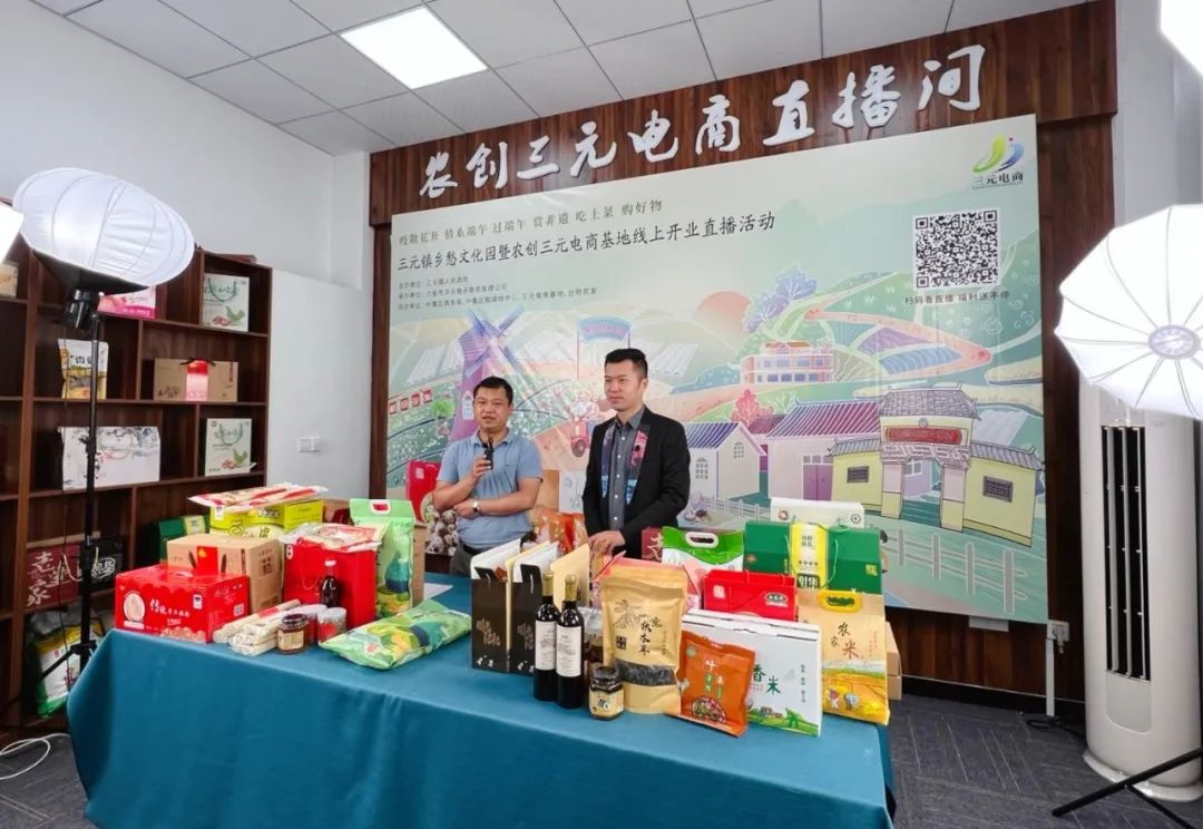“農(nóng)創(chuàng)三元電商基地”第一播與“揭牌儀式”同步開始,鎮(zhèn)黨委書記、網(wǎng)絡(luò)主播、地方企業(yè)家、文化名人等輪番走進(jìn)直播間。此次直播,精選了宏山純手工掛面、龍?jiān)创荷疚r香米、祖灃牛肉辣椒醬、白龍井吊瓜子、武妹蜂蜜等10余種農(nóng)產(chǎn)品,以最優(yōu)、最值、最好的理念上架直播間。直播間最高在線人數(shù)近9萬人,當(dāng)天線上線下銷售額共計(jì)7.6萬元。歷時(shí)2個(gè)余小時(shí)的直播,用數(shù)據(jù)迎來了“三元電商”的“開門紅”。