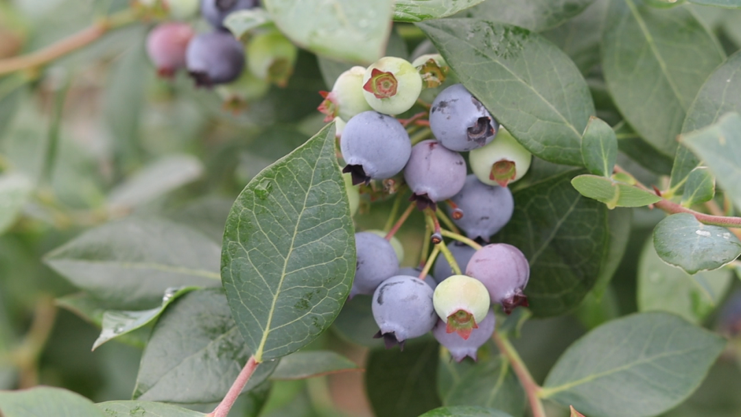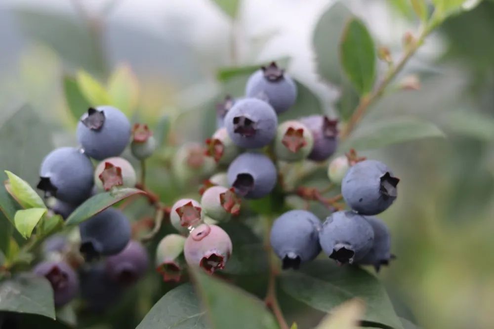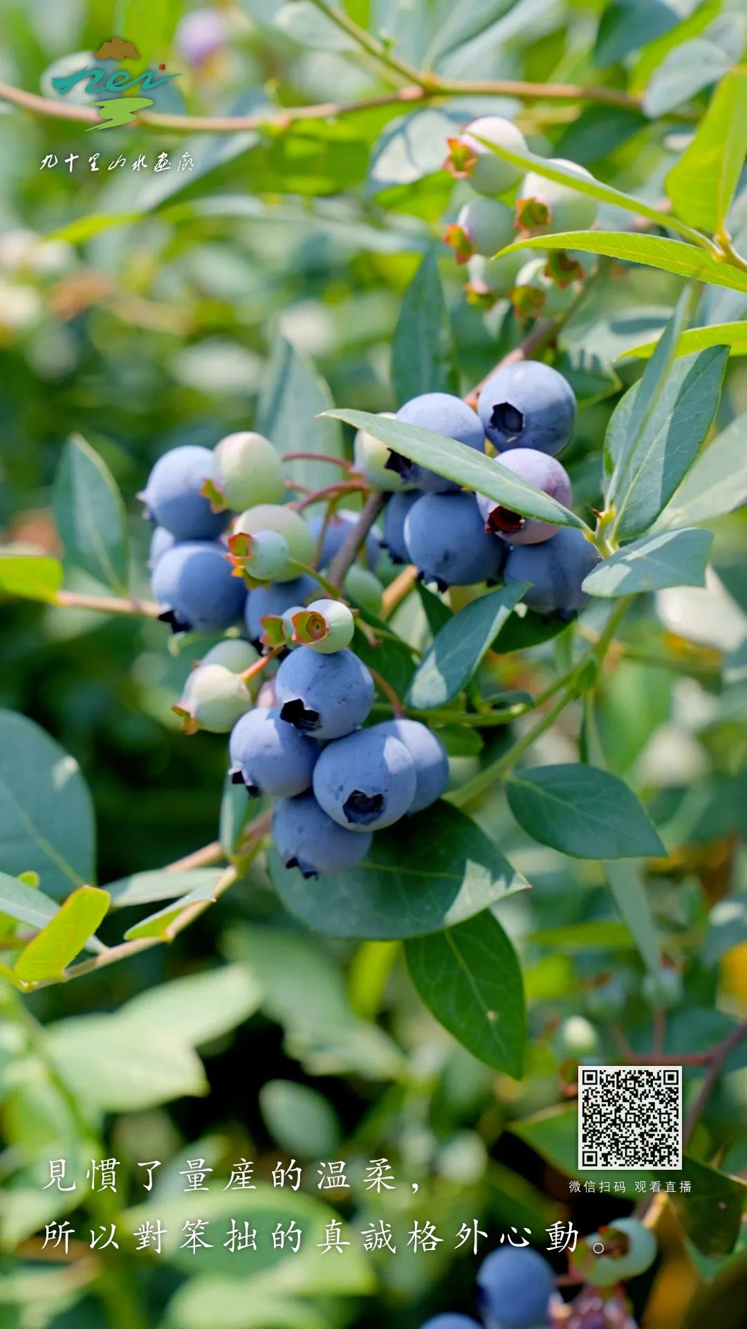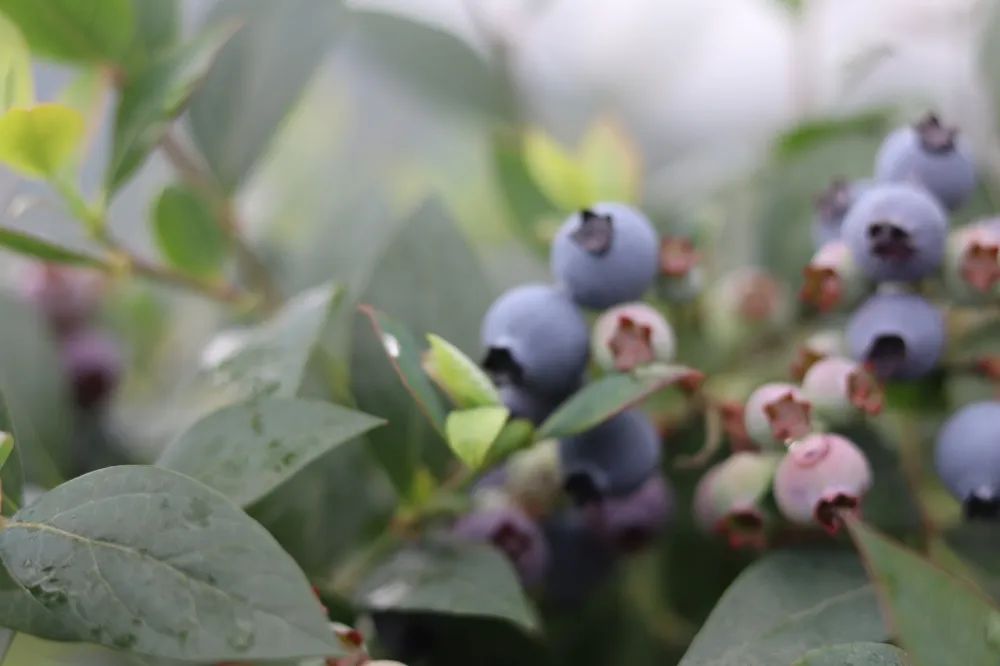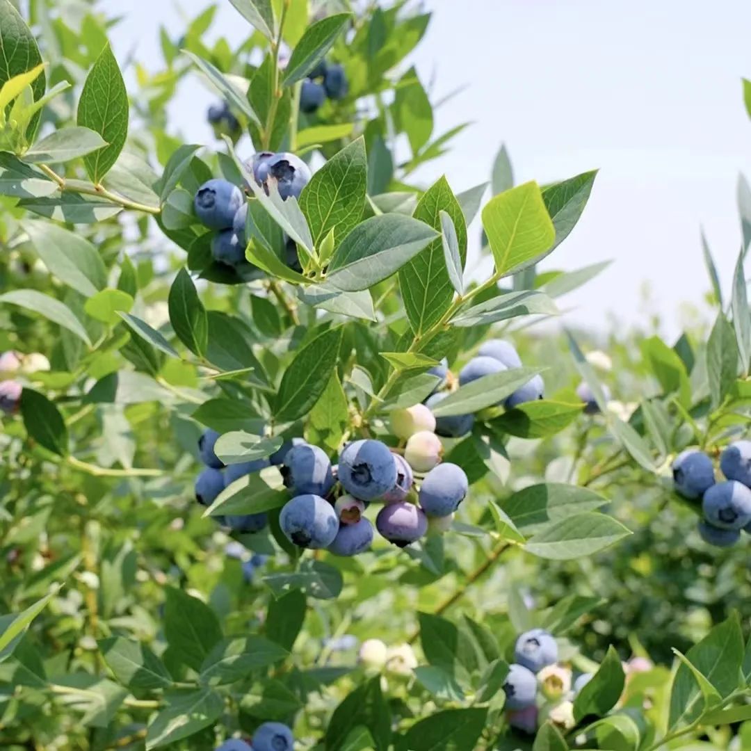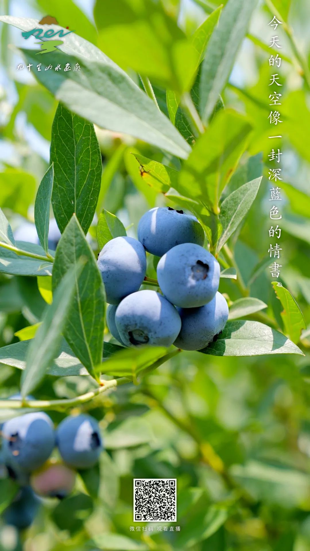 抬頭是藍(lán)天,低頭藍(lán)莓甜。藍(lán)莓屬于小漿果,果肉細(xì)膩,富含花青素等多種營養(yǎng)成分。摘一顆覆蓋著白色果霜的藍(lán)莓果子,抿一顆入口,輕輕咬破,清甜的汁水充盈唇齒間,帶著驚喜的酸甜,漿汁在口中四溢蔓延,瞬間幸福感爆棚,這大概就是夏天的味道吧。