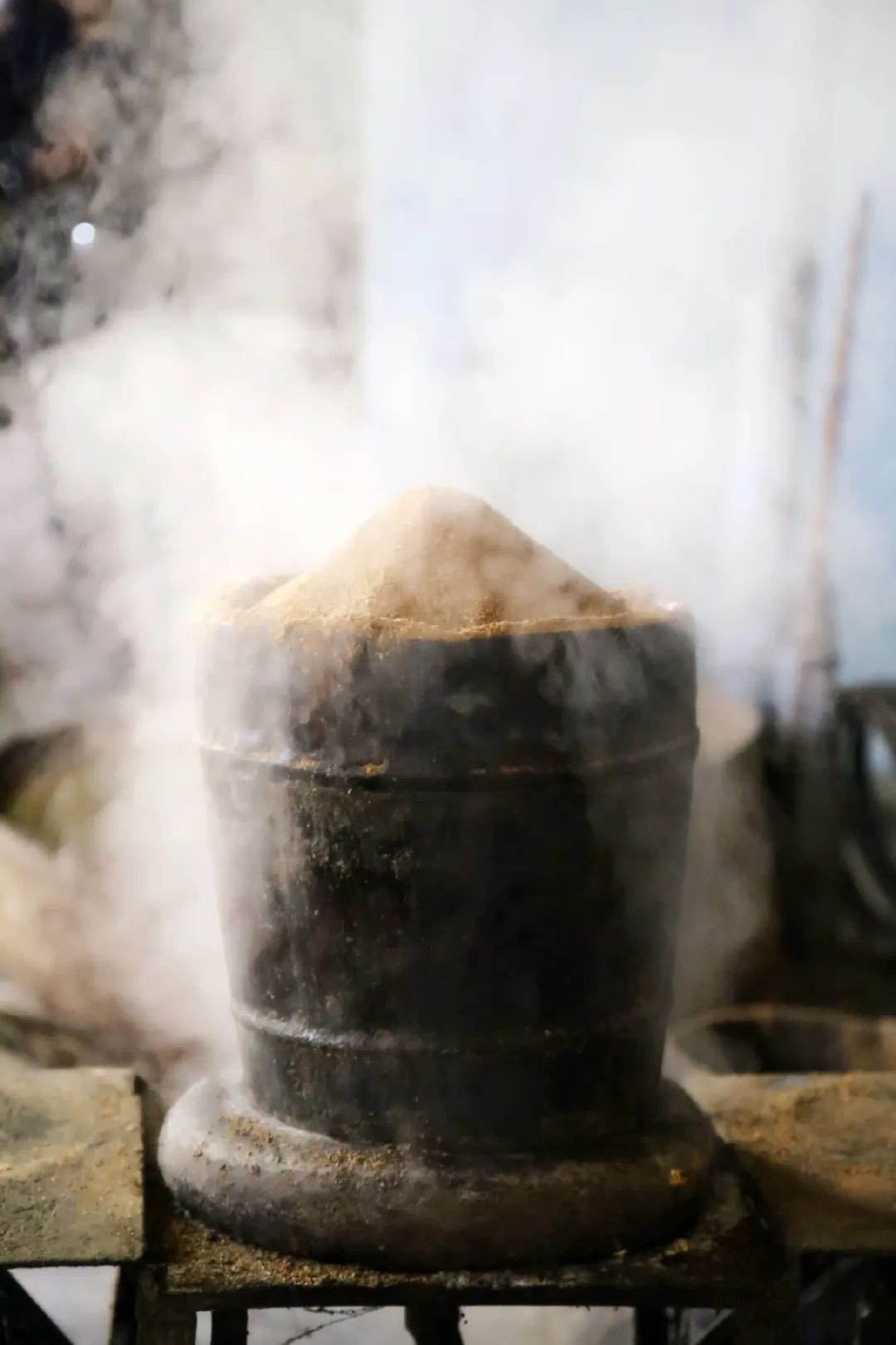 滾燙的芝麻需要及時散熱,翻動,避免產(chǎn)生老火糊味。芝麻經(jīng)過碾壓磨成細(xì)粉,離榨油又近了一步,碾壓的細(xì)粉還要放置蒸籠內(nèi),熱汽蒸五分鐘。師傅嫻熟的動作其實(shí)也是把握著時間節(jié)奏,菜籽顏色轉(zhuǎn)變?yōu)榭Х壬?,及時取出,進(jìn)行包餅。