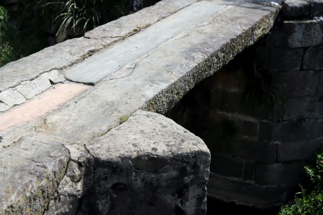 見(jiàn)我們圍著老橋轉(zhuǎn),老鄉(xiāng)就微笑著過(guò)來(lái)了,捧著飯碗。老鄉(xiāng),這個(gè)橋很老了吧?是有年頭了,宋代的。宋代的?見(jiàn)我們懷疑,老鄉(xiāng)不說(shuō)話了,敲一下飯碗,筷子指著石頭。我們無(wú)意冒犯,趕緊看石頭。整座橋都是清一色的老石頭,色澤不一,黝黑色的居多,間插著幾塊暗紅的,雕工談不上多精美,但面平棱直,刻痕非常清晰,粗糙中透著力度,每個(gè)刻痕里都藏在歲月的包漿,猶如老人的皺紋。老石條在網(wǎng)上很值錢(qián),一小塊就是好幾百,沖的就是這種滄桑與煙火。