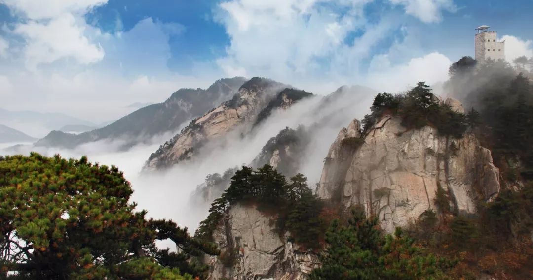 天堂寨峰林景觀,如刀劈斧削,犬牙交錯(cuò),披綠掛紅,雄偉壯觀,多姿多彩,和煦的陽(yáng)光中,出現(xiàn)了美麗的平流霧奇觀。云霧繚繞,朝霞輝映,薄薄的云霧蜿蜒飄蕩,將萬(wàn)峰林裝扮得分外妖嬈,峰林之間內(nèi)一步一景,步移景換,景景如畫。