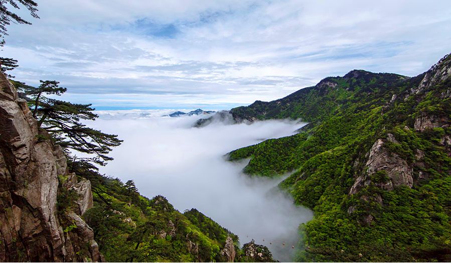 天堂寨“四絕”中,云海是最具靈氣的景致,被譽(yù)為天堂寨美景的魔術(shù)師。夏日雨水多,自然醞釀出的薄薄云海也格外灑脫、清麗。