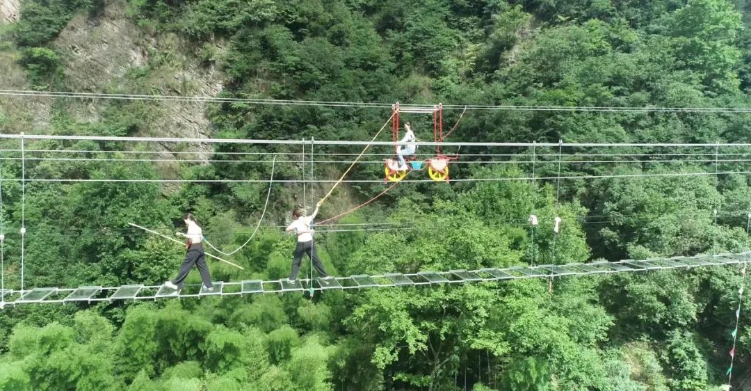 21日上午9:30,“步步驚心”游客體驗項目正常經(jīng)營,準備體驗項目的游客紛紛購票來到項目游客平臺。這時,一名正在“步步驚心”單車騎行項目上進行騎行游玩的游客突然在空中大聲呼救。原來這名游客騎行到后半階段時,可能是前面騎行花費氣力較大,加上處于上坡階段,此時已無力再騎行,但是因為是在高空中,無法前進或后退,其情緒變得焦躁,情況十分危急。項目現(xiàn)場管理人員聽到呼救后,一邊向懸空的游客喊話,叫他保持冷靜不要晃動,一邊安排人員上橋?qū)υ撁慰瓦M行施救。
