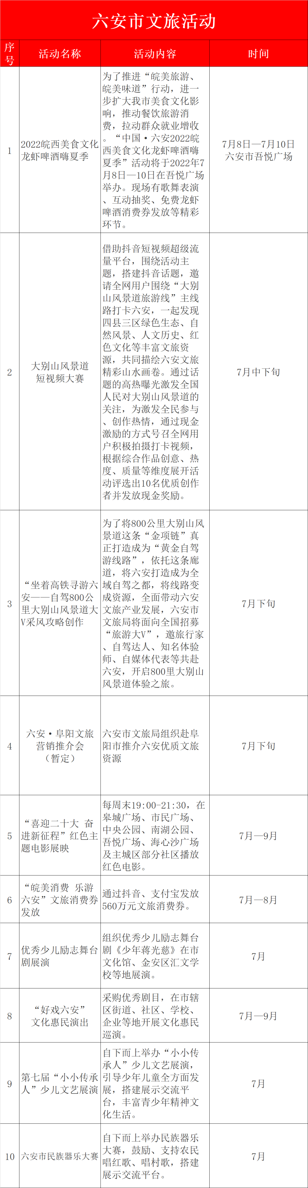 安徽人游安徽 | “月惠”六安,皋城7月文旅活動精彩紛呈