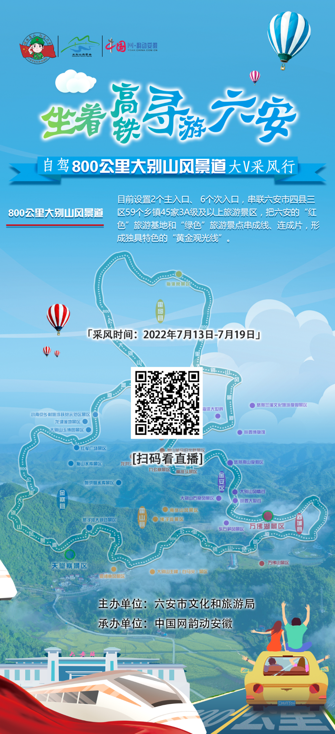 悠悠夏日長(zhǎng),此時(shí)美景正當(dāng)賞!2022“坐著高鐵尋游六安——自駕800公里大別山風(fēng)景道”采風(fēng)活動(dòng)于7月13日正式啟動(dòng)。通過全網(wǎng)招募優(yōu)選出的6名旅游大V一起走進(jìn)六安,領(lǐng)略六安的山水人文風(fēng)光,一起近距離感受800公里大別山風(fēng)景道的自駕體驗(yàn)之美。
