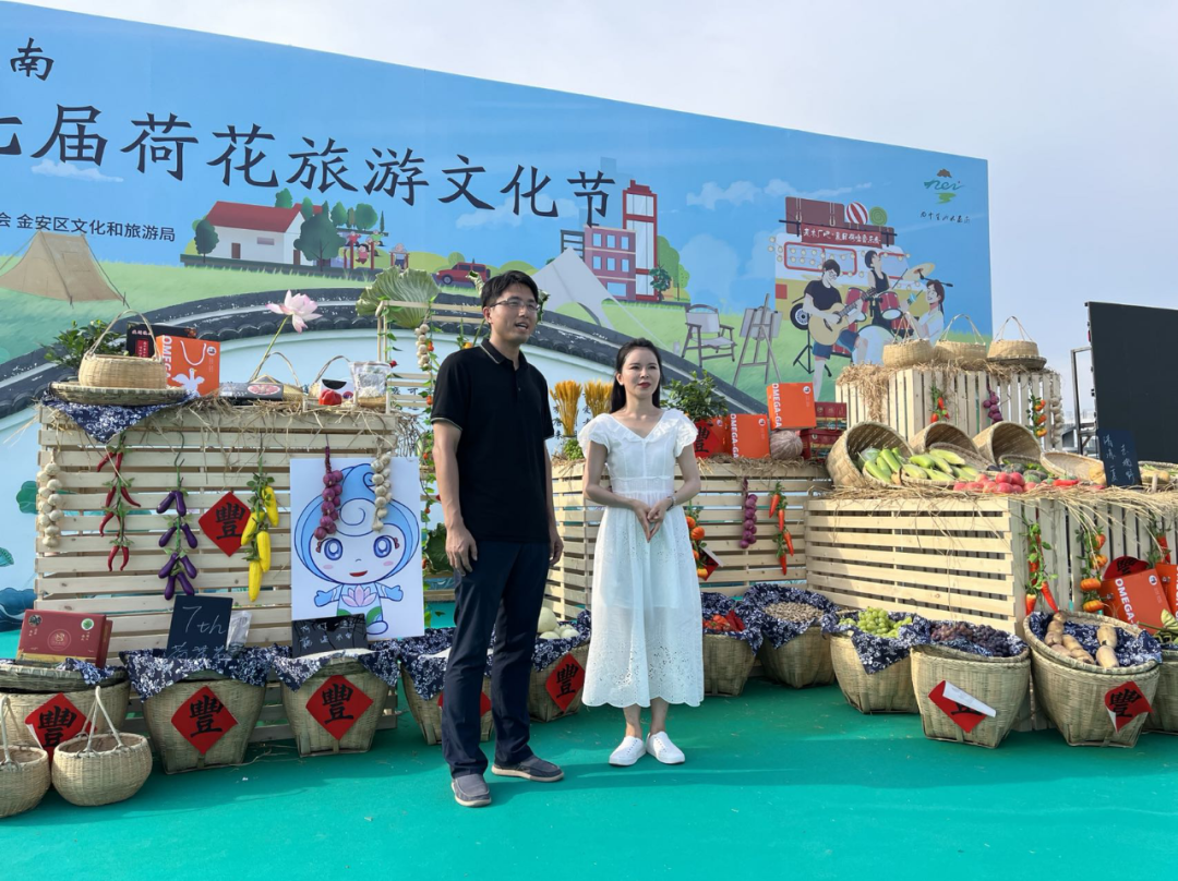 開幕式當(dāng)天,游客賞荷觀景,置身在“綠意與粉紅”的夏日荷塘美景中。木廠鎮(zhèn)黨委副書記、鎮(zhèn)長(zhǎng)邵宇走進(jìn)直播間,與主持人一起云游木南園區(qū),推薦木廠好物、好景,帶網(wǎng)友“零距離”與荷花美景和農(nóng)品市集無(wú)縫接觸。同時(shí),荷花島上布置了Q版皖西大白鵝、荷塘詩(shī)集、農(nóng)品集市等創(chuàng)意藝術(shù)裝置,引得游客們打卡拍照。