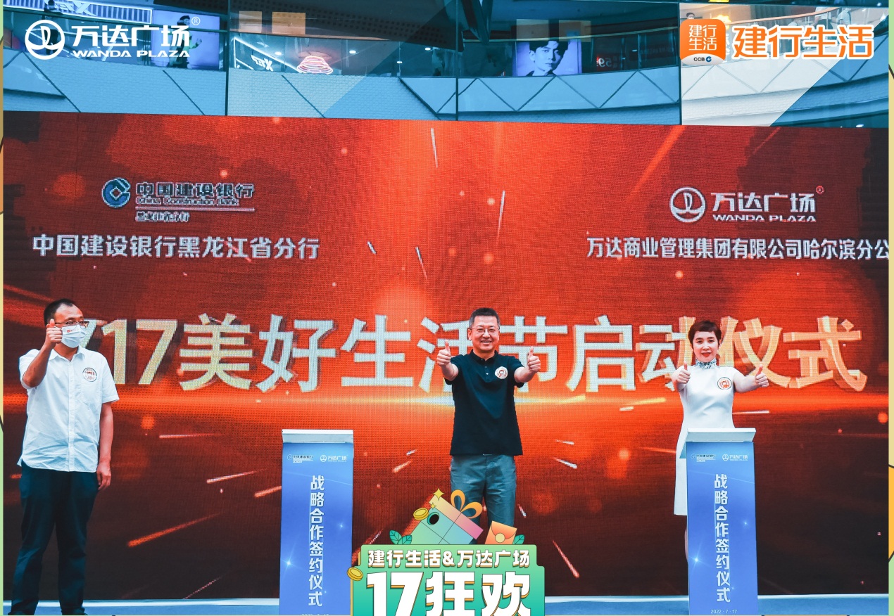 7月17日上午,建設(shè)銀行黑龍江分行與萬達(dá)商業(yè)管理集團有限公司哈爾濱分公司聯(lián)合舉辦“建行生活”與全省萬達(dá)建立戰(zhàn)略性合作簽約儀式暨“建行生活”?萬達(dá)廣場“717美好生活節(jié)”啟動大會。哈爾濱市南崗區(qū)商務(wù)局有關(guān)負(fù)責(zé)人出席活動。