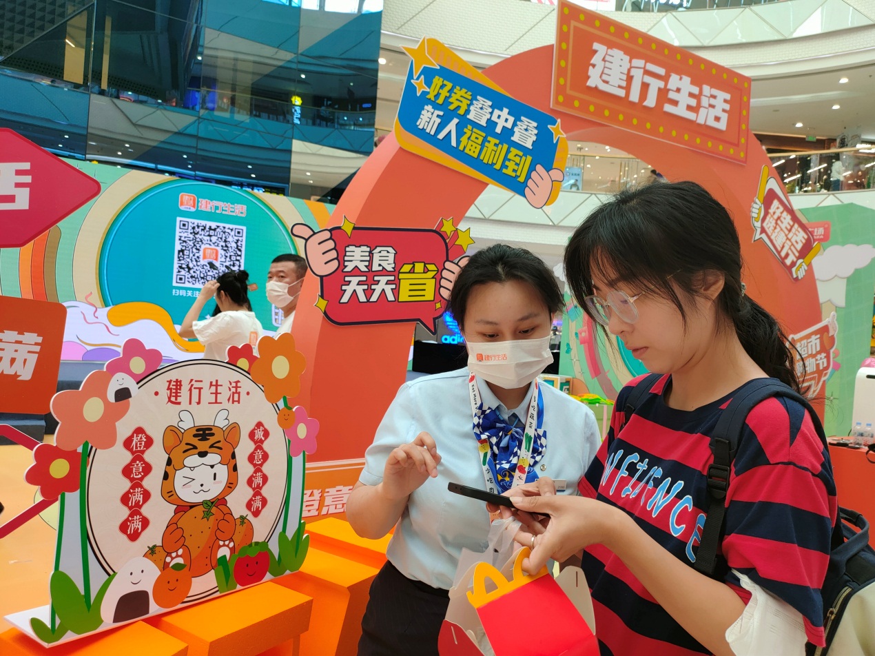 活動現(xiàn)場,新注冊“建行生活”APP的用戶除了可以領(lǐng)取平臺常規(guī)新人福利外,還紛紛拍照打卡,參與現(xiàn)場抽紅包、套圈等小游戲,贏取“717美好生活節(jié)”專屬禮遇?!耙槐滩?塊錢搞定,看電影領(lǐng)滿減券,玩累了1元吃大餐”,剛剛抽中“霸王餐”的張女士興奮地表示,“‘建行生活’簡直承包了我的假期出行指南!”在尋蟹記肉蟹煲店,正在收銀臺付款的宋女士開心地表示,“今天正好和朋友相約,遇到了建行生活的現(xiàn)場活動,沒想到領(lǐng)到了100元減50元的優(yōu)惠券,五折享用一頓午餐,特別開心?!?/p>