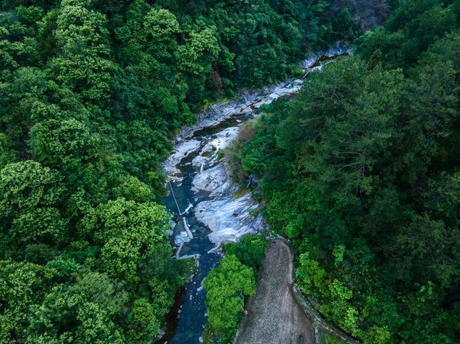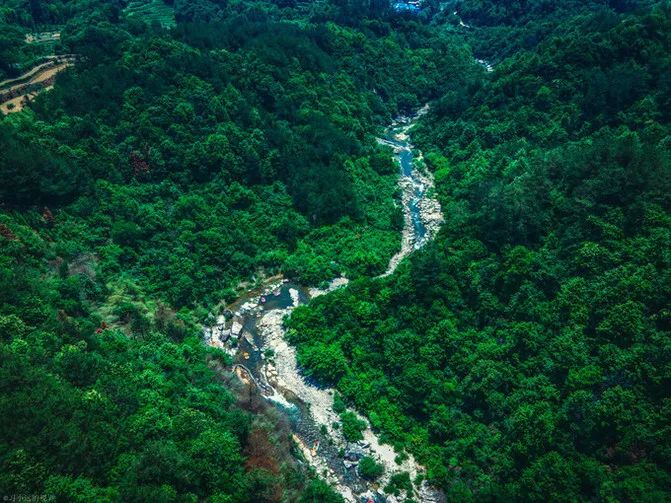 前一天到達(dá)了目的地,便開(kāi)車(chē)去了漂流的始發(fā)點(diǎn),由于關(guān)了水閘的緣故,水流看起來(lái)是潺潺細(xì)流,綿延在這山谷之間,飛起無(wú)人機(jī)可以看到遠(yuǎn)處人家?guī)缀醵际且黄黄木奂瑮盍釉谏介g曲折環(huán)繞,流過(guò)村鎮(zhèn)??粗@日暮西下的景色,倒是覺(jué)得白天在這青天白云,綠樹(shù)環(huán)繞的山谷間漂流一番,也是非常愜意。有了美好的印象,便等著第二天爽上一番。