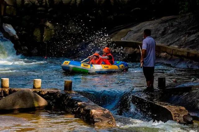 對于像我這樣怕熱的人來說,隨著皮筏一下扎進(jìn)去水里是漂流最好的降溫方式,在激流處皮筏隨著急流時上時下,無時無刻都在緊緊地抓住皮筏上的扶手,不過不必?fù)?dān)心安全問題,途中有很多安全員守護(hù)著,經(jīng)歷了一處急流,就有一處平緩的水面,讓你來調(diào)節(jié)緊張的心情,在這里可以毫無顧忌的打水仗,如果你的裝備不行,那么請你盡量選擇低調(diào),小心被別人潑的睜不開眼睛~