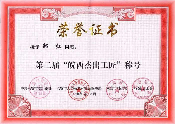 我每天含辛茹苦,從早上六點(diǎn)半忙到晚上九點(diǎn)半。大家聚在一起,創(chuàng)造藝術(shù),探索竹編工藝的未來(lái)。三十年的勞作,已經(jīng)讓我的手掌傷痕累累。手指已經(jīng)被染料染黑,手上起了一層厚厚的老繭。但是,哪怕是節(jié)假日,我也仍然堅(jiān)持在崗位。辛苦的付出是有回報(bào)的。去年,我獲得了安徽省三八紅旗手、六安市勞動(dòng)模范、全國(guó)鄉(xiāng)村工匠等榮譽(yù)稱號(hào);并榮獲六安市優(yōu)秀非遺傳承人。