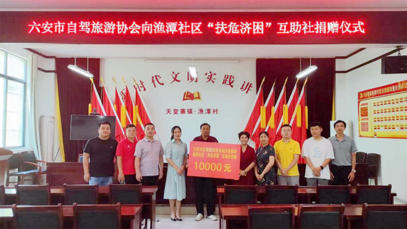 捐款儀式在漁潭村村委會(huì)舉行,六安市旅游自駕協(xié)會(huì)向漁潭社區(qū)“扶危濟(jì)困”互助社捐贈(zèng)人民幣10000元,充分體現(xiàn)了六安旅游企業(yè)強(qiáng)烈的社會(huì)責(zé)任感和高尚的道德情操。漁潭村黨支部書記黃桂先對(duì)市文旅局、市自駕旅游協(xié)會(huì)的關(guān)懷和幫助表達(dá)了誠(chéng)摯的謝意,并表示“扶危濟(jì)困”互助社的宗旨目標(biāo),是面向全村針對(duì)困難群眾、重大疾病家庭、意外突發(fā)事件家庭和其他原因造成家庭生活困難的群體給予的應(yīng)急性、過渡性的村級(jí)社會(huì)組織的一種救助,此次募集的資金也會(huì)嚴(yán)格監(jiān)督管理,將捐助人捐款情況、以及之后的每一次救助結(jié)果進(jìn)行公示。