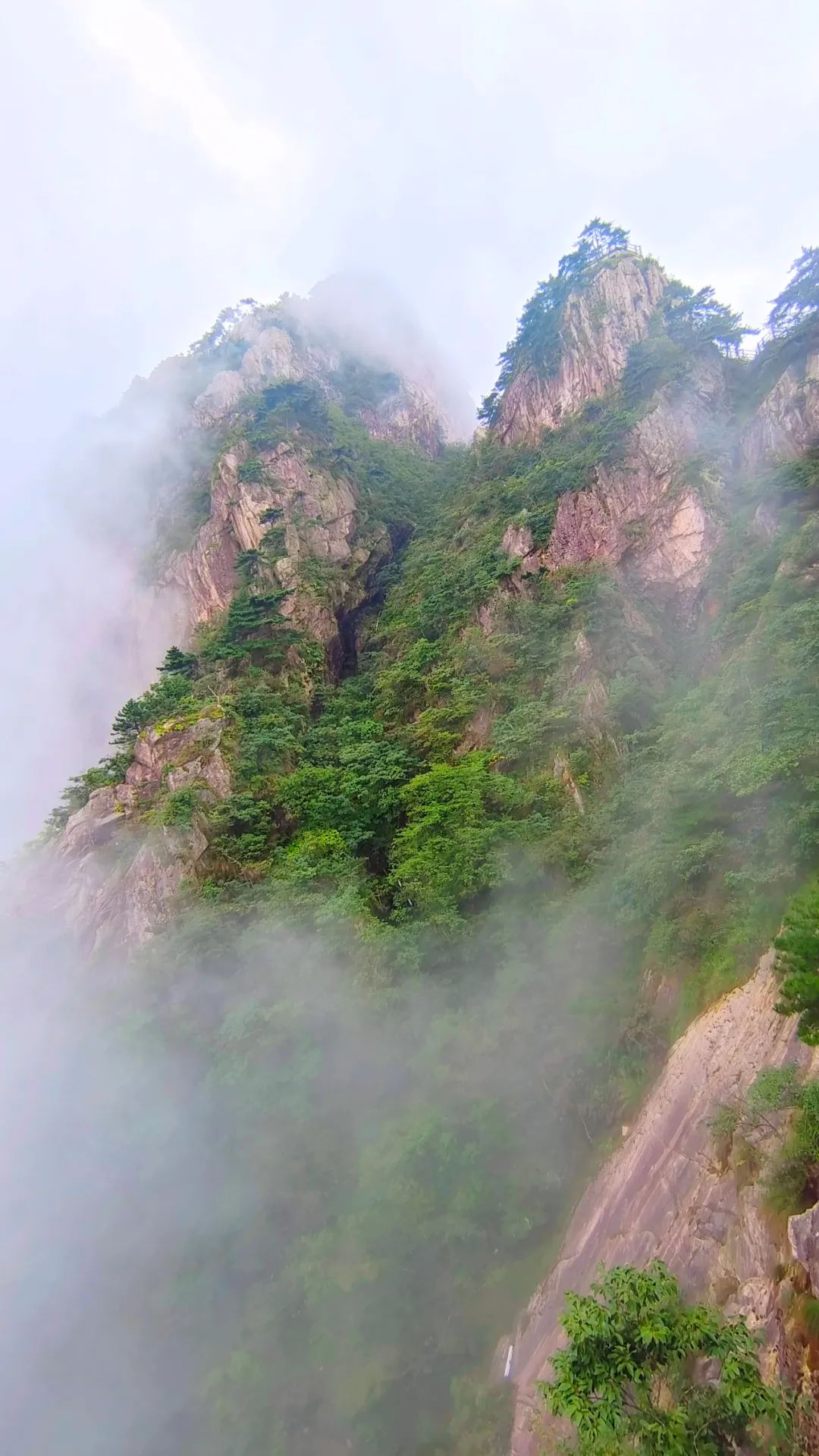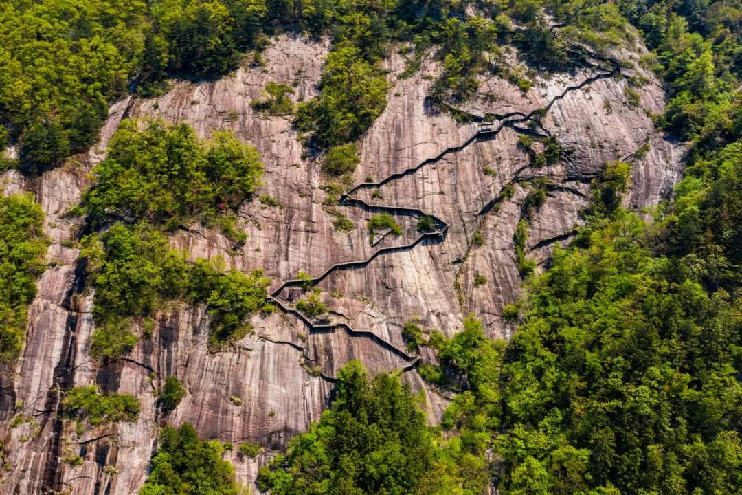 依山而建的白云峰棧道,似一條巨龍攀附在山壁上。一步一步越來(lái)越接近天空,看著腳下陡峭的山體,恐高的估計(jì)會(huì)一身顫栗吧。