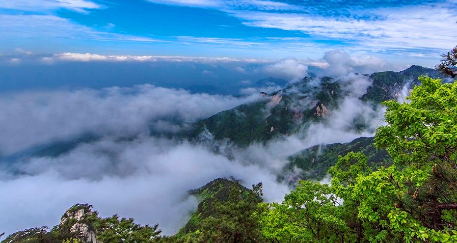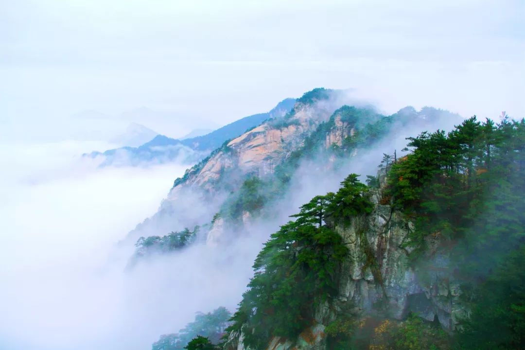 登上主峰,四面蒼峰翠岳,兩旁崗巒聳立。放眼望去,在云海蒼茫之間,才體會(huì)到“會(huì)當(dāng)凌絕頂,一覽眾山小”的意境。
