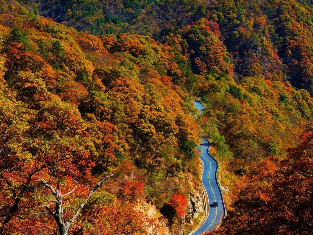 ①秋日里的大別山五彩斑斕,自駕大別山風(fēng)景道猶如駛進(jìn)童話世界。