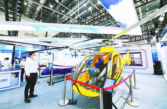 安徽應(yīng)流集團(tuán)展出的雙座直升機。記者 郭如琦 趙瑞瑞 攝