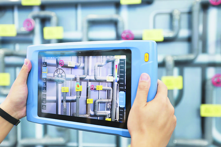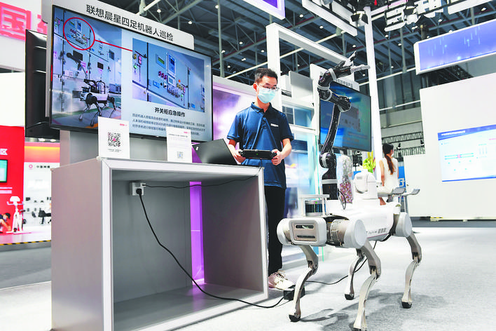 聯(lián)想帶來的晨星四足電力巡檢機器人。記者 張大崗 攝