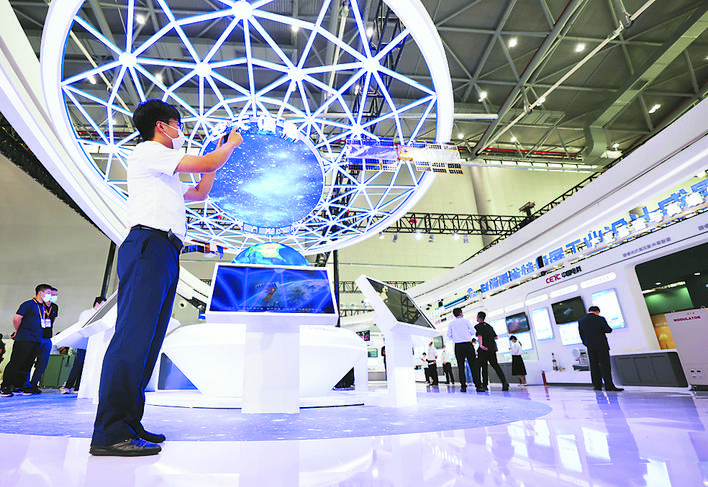 市民在中電科展區(qū)拍照留念。記者 宋炎駿 李予 攝