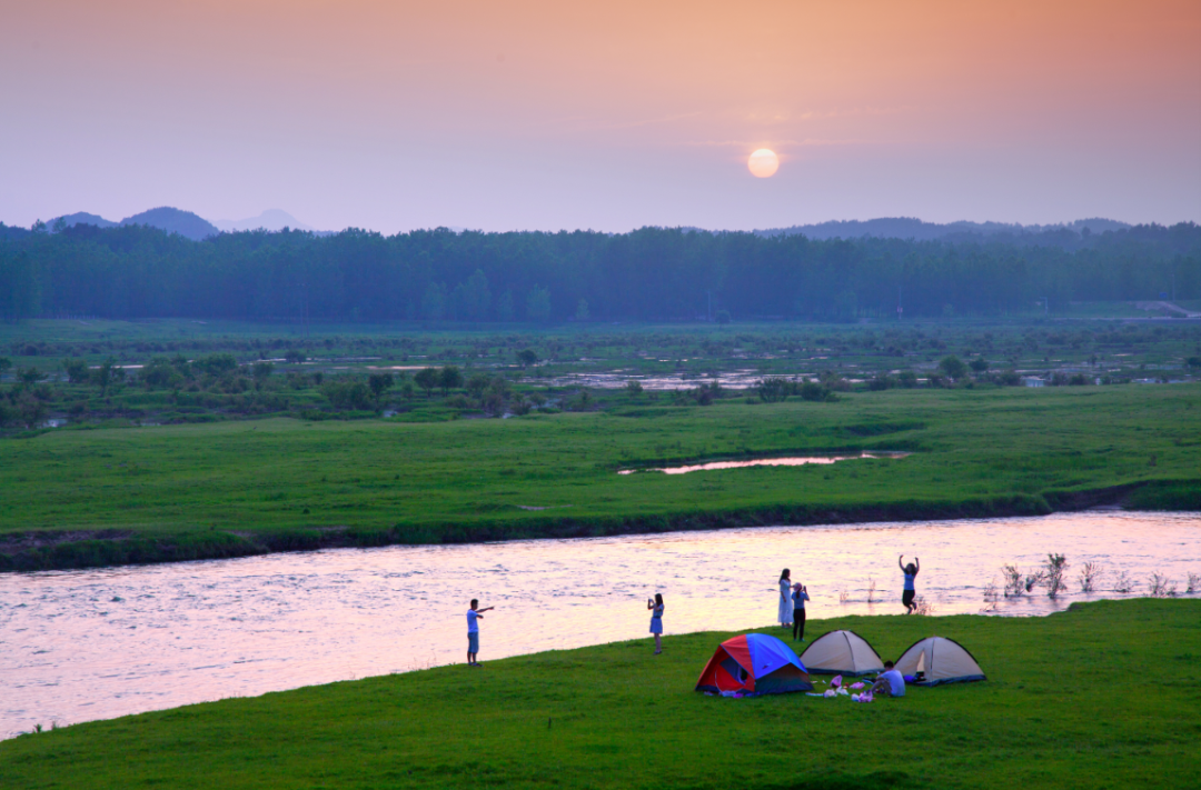 “青山環(huán)碧水,綠樹映紅樓;白鷺藍空舞,畫舫逐浪游”,橫排頭被譽為現(xiàn)代“都江堰”,是人間天河淠史杭的發(fā)源地,擁有六安城郊最大的濕地面積。橫排頭是鳥的樂園,林木掩翠,灘青草綠,十萬白鷺翱翔碧水長空。濕地沿岸植被景觀多姿多彩,從青山鄉(xiāng)至獨山鎮(zhèn)數(shù)公里,生態(tài)環(huán)境優(yōu)越,野生動植物類型豐富,是大量水鳥的重要棲息場所;奇花異草散布河灣、沙洲;灌叢、草地、水域、灘涂、農(nóng)田鑲嵌分布,構成獨具魅力的河流濕地景觀。朝暉初上,湖面爽氣襲人,徘徊河流兩側,巡行濕地風景道,波光云彩,花葉全香,萬綠青英,沁人肺腑,怡靜的水光山色,充滿大自然的生機與野趣。