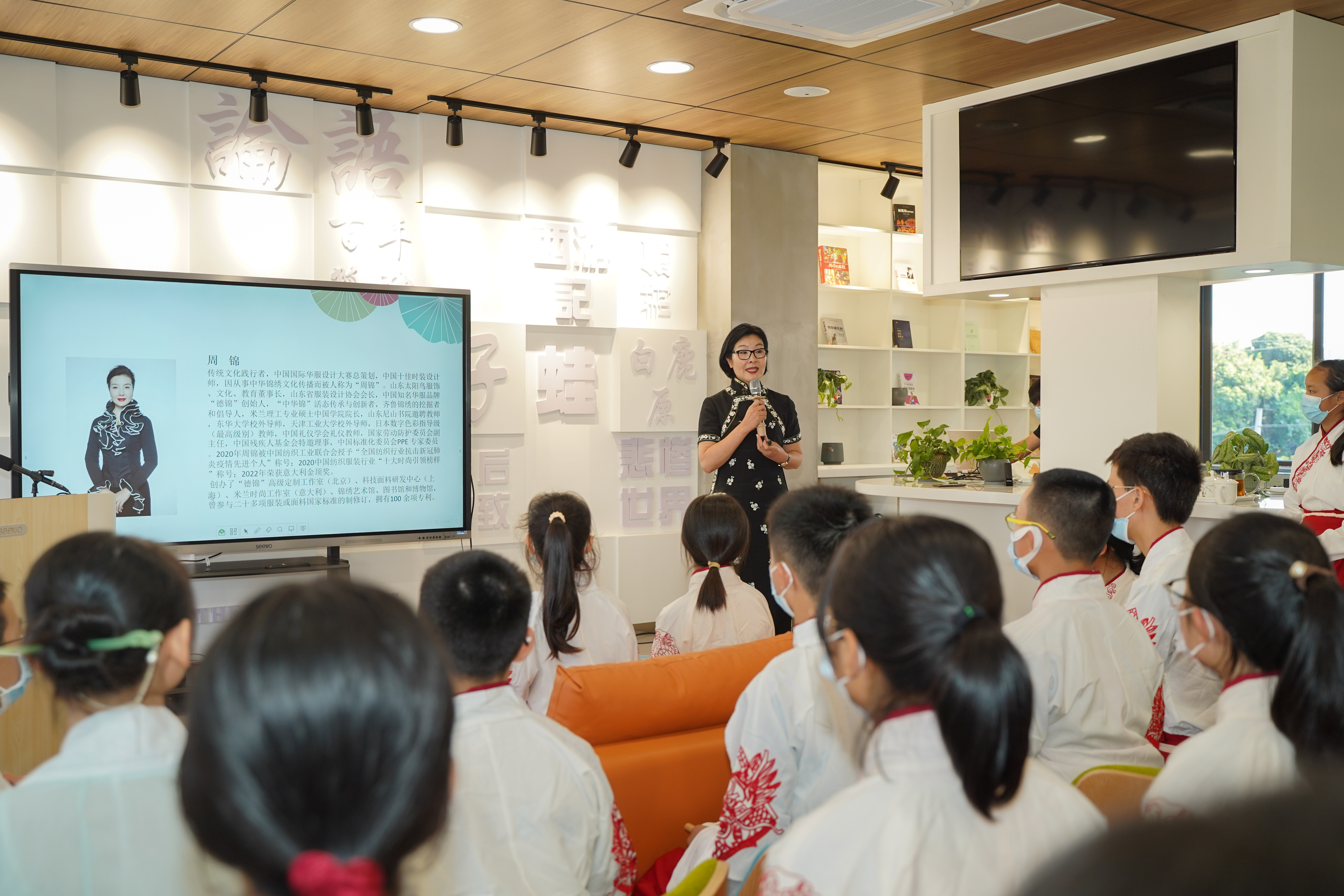 周錦會長還向同學們展示了德錦2020國際時裝周“天德”發(fā)布會,“高手”發(fā)布會,2021國際時裝周“德興”發(fā)布會,“尚方”發(fā)布會等系列發(fā)布會的現(xiàn)場情況以及國際主流媒體對“德錦”——疫情后引領世界的設計師的一些報道,打開了華邁孩子的眼界,激發(fā)了同學們對文化與時尚的熱愛。