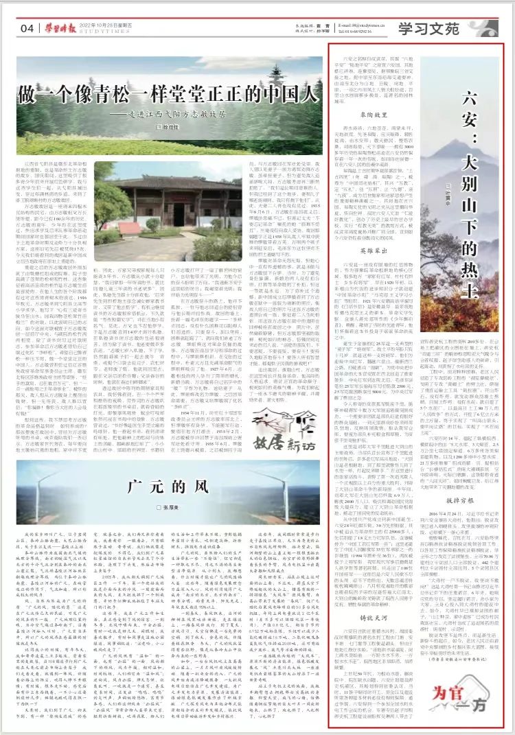 10月28日,學(xué)習(xí)時報刊登市委書記葉露中署名文章《六安:大別山下的熱土》。全文如下:
