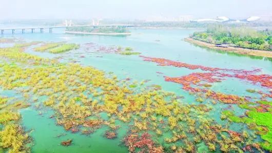 (責(zé)任編輯:君君)11月8日,六安淠河國家濕地公園城區(qū)月亮島段,清波蕩漾,秋色旖旎,斑斕色彩繪就出濕地與城市和諧共生的美麗圖景,成為皖西大地一張亮麗的名片。