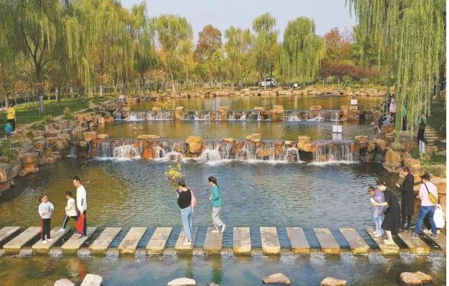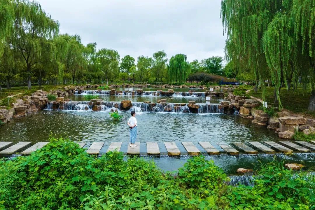 其實,這個“網(wǎng)紅”瀑布并非自然形成,而是人工建設而成的。人工修建三道落差,水流直下,流水潺潺,形成瀑布狀,與四周的園林綠化相映成景。