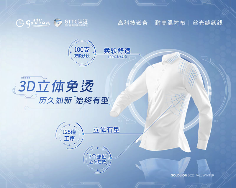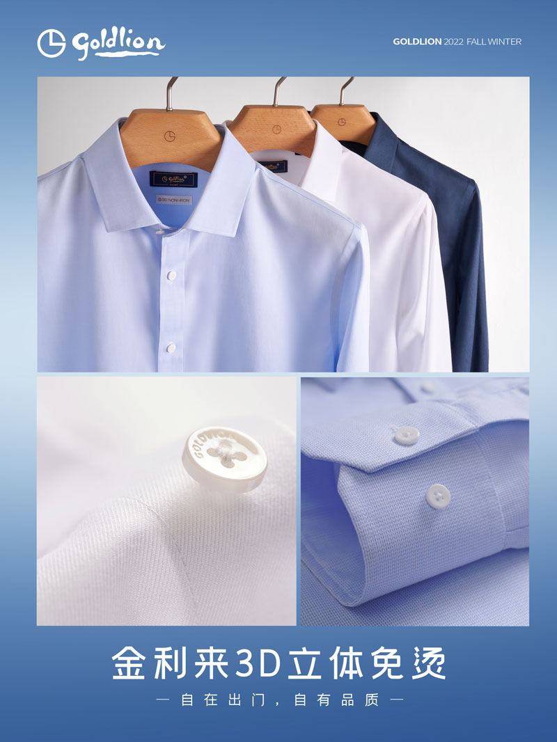 職場男士時(shí)間、精力是最寶貴的,選擇襯衫“免燙”是不得不重視的,以創(chuàng)新科技為載體,金利來3D立體免燙襯衫解決了傳統(tǒng)襯衫的主要痛點(diǎn),免燙易打理,真正做到匠心制造。每一件襯衫都經(jīng)過了128道工序精心制作,采用國家標(biāo)準(zhǔn)3.5-4級免燙技術(shù),從領(lǐng)口延伸至袖口7個部位立體壓燙,所有骨位加固嵌條有效保持多次洗滌后成衣依舊平整如新,出門隨拿隨穿,上身一天都不會有褶皺;采用100支長絨棉高紗支防皺面料,雙倍質(zhì)感、雙倍細(xì)膩,其柔軟度,光澤度,親膚度,透氣性,彈性等均遠(yuǎn)超普通棉,為肌膚帶來柔軟服帖的舒適體驗(yàn),沉著干練中透出一絲精致。