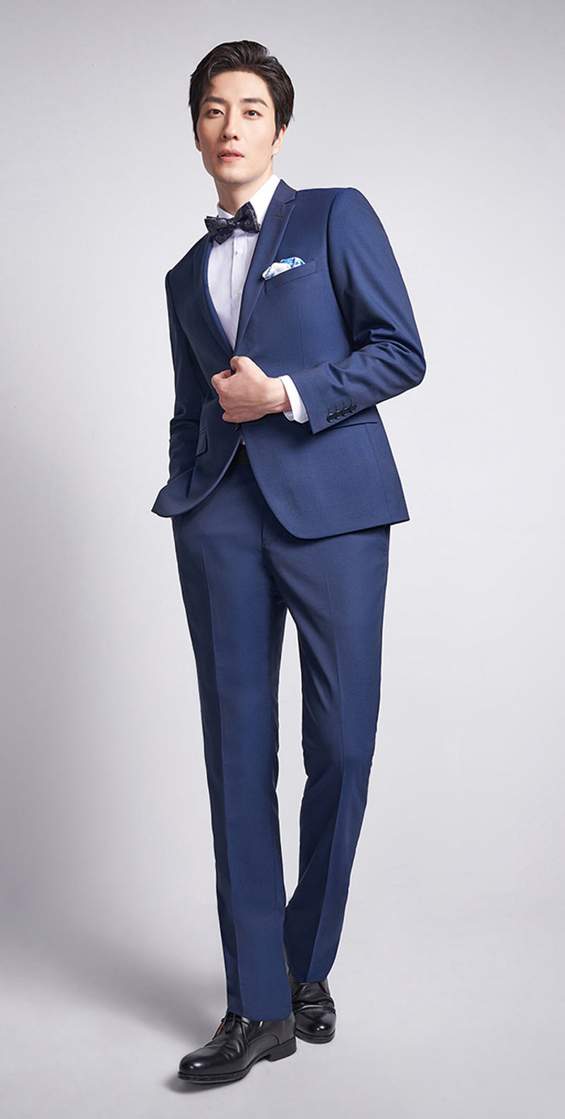 這套金利來藍(lán)色西裝,采用金利來自主研發(fā)羊毛彈力面料,精選優(yōu)質(zhì)色織羊毛名綸混紡,手感順滑,回彈性較好,無界縛感,不折皺,穿著舒適自在,更方便打理,拉滿新郎的舒適度。平駁領(lǐng)設(shè)計,剪裁干凈利落,精致有型,更經(jīng)典大方,突顯年輕時尚感,兩??蹎伍_衩修身版,上身完美修飾身型,顯高顯瘦更顯完美好身型,提升新郎的時尚魅力值。