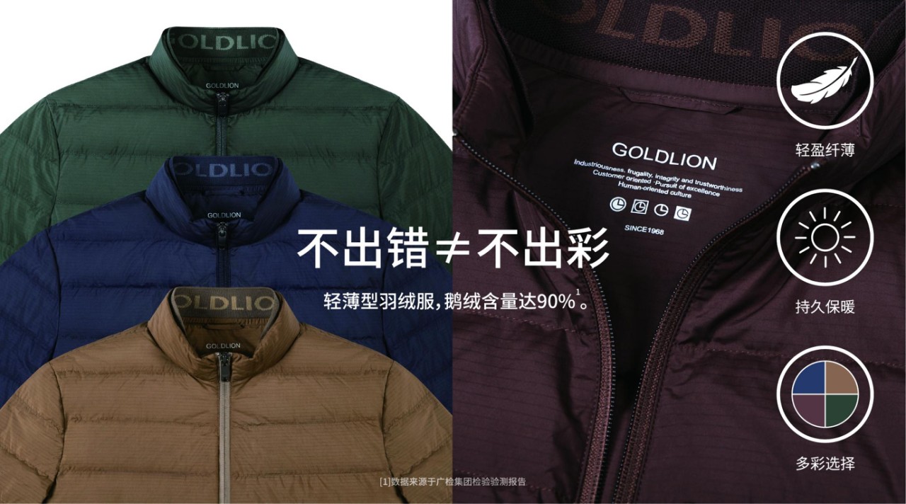 金利來多彩羽絨系列堅持選用高品質(zhì)染色工藝,多種款式造就出彩溫暖,是男士們冬日專屬的風格。