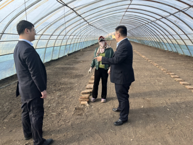 建設(shè)銀行富錦支行工作人員向潘秀娟了解經(jīng)營情況