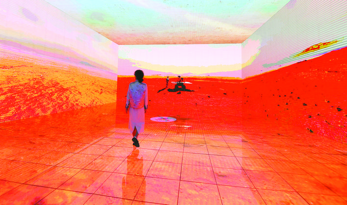新華社媒體融合生產(chǎn)技術(shù)與系統(tǒng)帶來身臨其境的體驗。記者 郭如琦 李予 攝