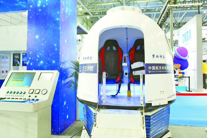 2023年4月24日是第八個“中國航天日”,航天日主題展在合肥濱湖國際會展中心主展館舉行。圖為航天運(yùn)輸系統(tǒng)展區(qū)。記者 郭如琦 李予 攝