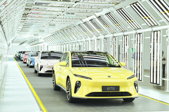 合肥新橋智能電動汽車產(chǎn)業(yè)園蔚來eT5車型下線。記者 張大崗 攝