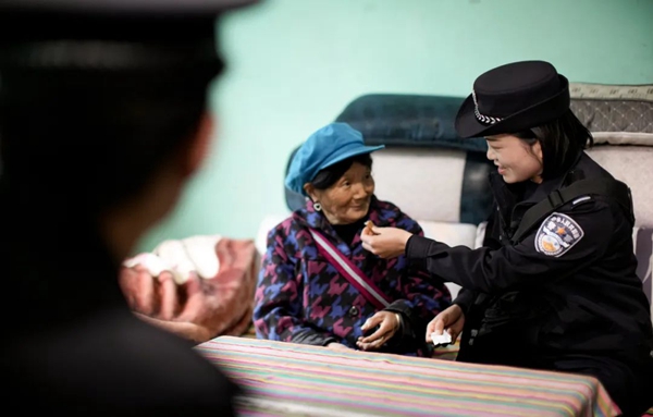 “我們現(xiàn)在和村民都很熟悉了,大家就像親人一樣。”尹廣麗說,獨(dú)龍族群眾有什么事都愿意和民警們說,也會(huì)“毫不客氣”地請(qǐng)民警幫忙,取個(gè)快遞、帶個(gè)藥,都是常有的事,“我們經(jīng)常去看望村里的老人,家住獻(xiàn)九當(dāng)村的烈士遺屬齊奶奶生病了,我們及時(shí)了解情況后,就給她送藥?!币鼜V麗口中的齊奶奶,正是44年前為保護(hù)獨(dú)龍族群眾財(cái)產(chǎn)壯烈犧牲的烈士齊當(dāng)此的遺屬齊秀珍。