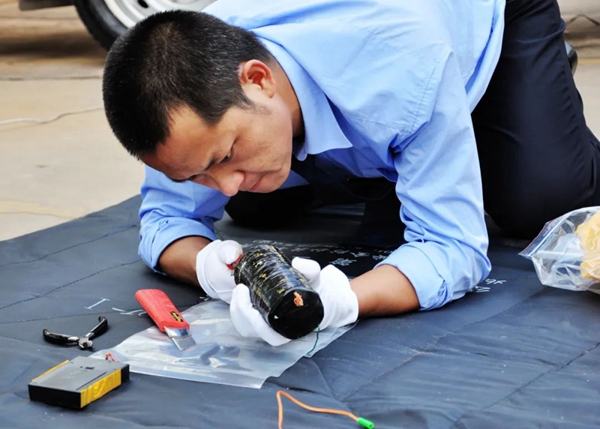 在2006年某超市爆炸物處置工作中,賀麗遠(yuǎn)負(fù)責(zé)人工拆彈。當(dāng)爆炸物外的膠帶被一層層剝開,露出里面的鬧鐘,他的心提到了嗓子眼——鬧鐘定時(shí)指針已被破壞,炸彈隨時(shí)可能爆炸……30分鐘后,賀麗遠(yuǎn)將炸彈成功拆除。此時(shí),犯罪嫌疑人已被抓獲,并交代了炸彈設(shè)定的爆炸時(shí)間——距離拆除時(shí)間僅剩不到10分鐘。