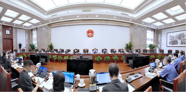 (7月4日,最高人民法院院長、首席大法官張軍主持召開最高法審判委員會會議,最高人民檢察院檢察長、首席大檢察官應(yīng)勇依法列席。孫若豐程丁/攝)
