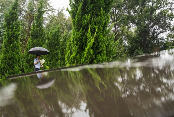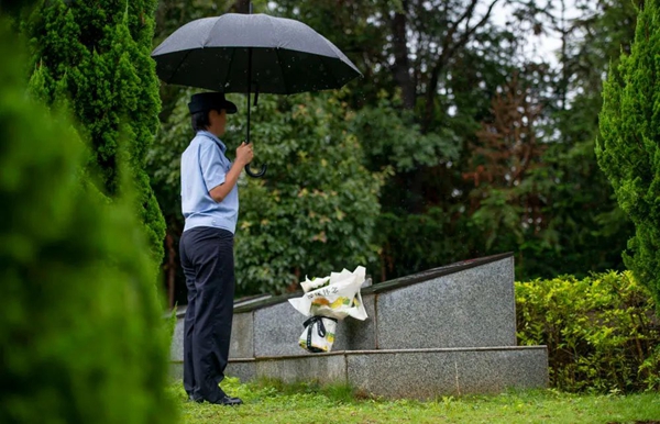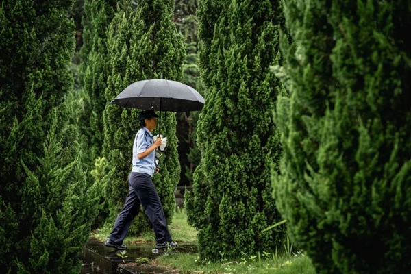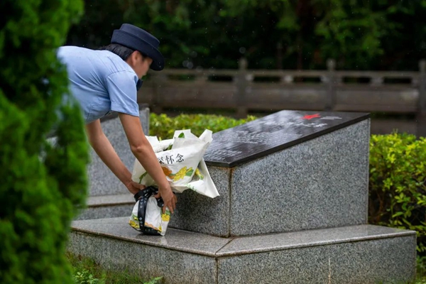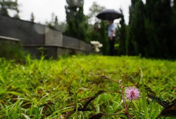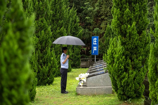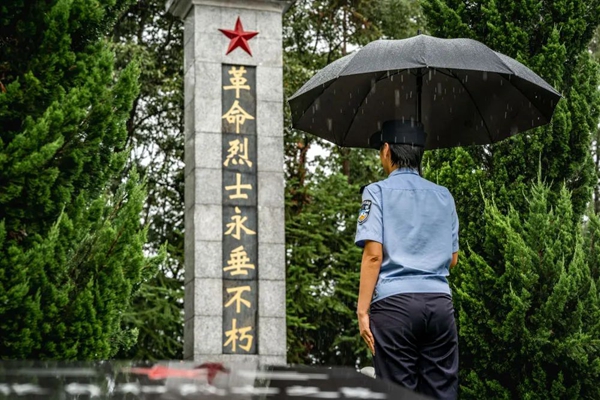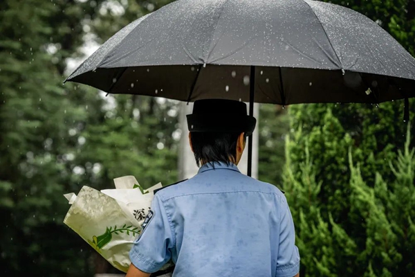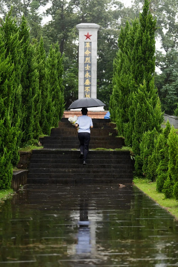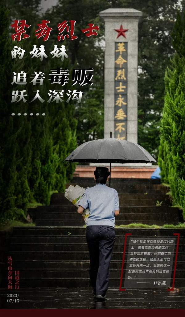 在雨中,一把黑傘,一束白花,一身警服的尹銘燕拾級而上,走向隴川縣烈士陵園的最高處,那里長眠著她的哥哥尹銘志。