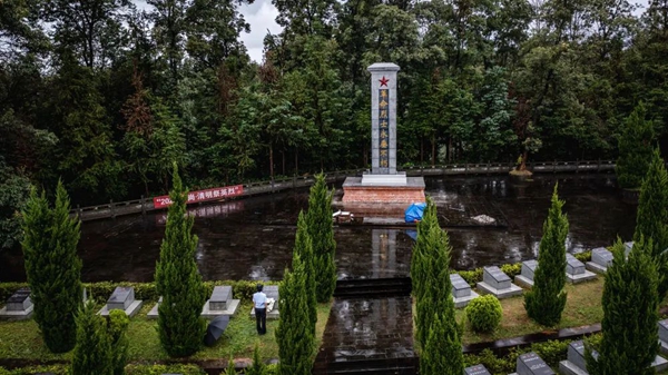 (7月12日,尹銘燕走在隴川縣烈士陵園中。新華社記者胡超/攝)