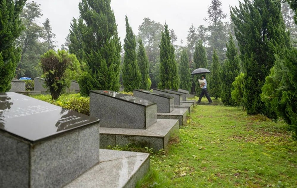 (7月12日,尹銘燕走在隴川縣烈士陵園中。新華社記者費(fèi)茂華/攝)