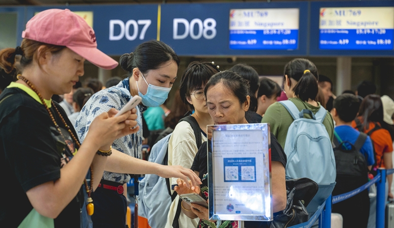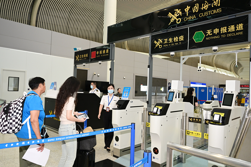 首航乘客通過中國(guó)海關(guān)