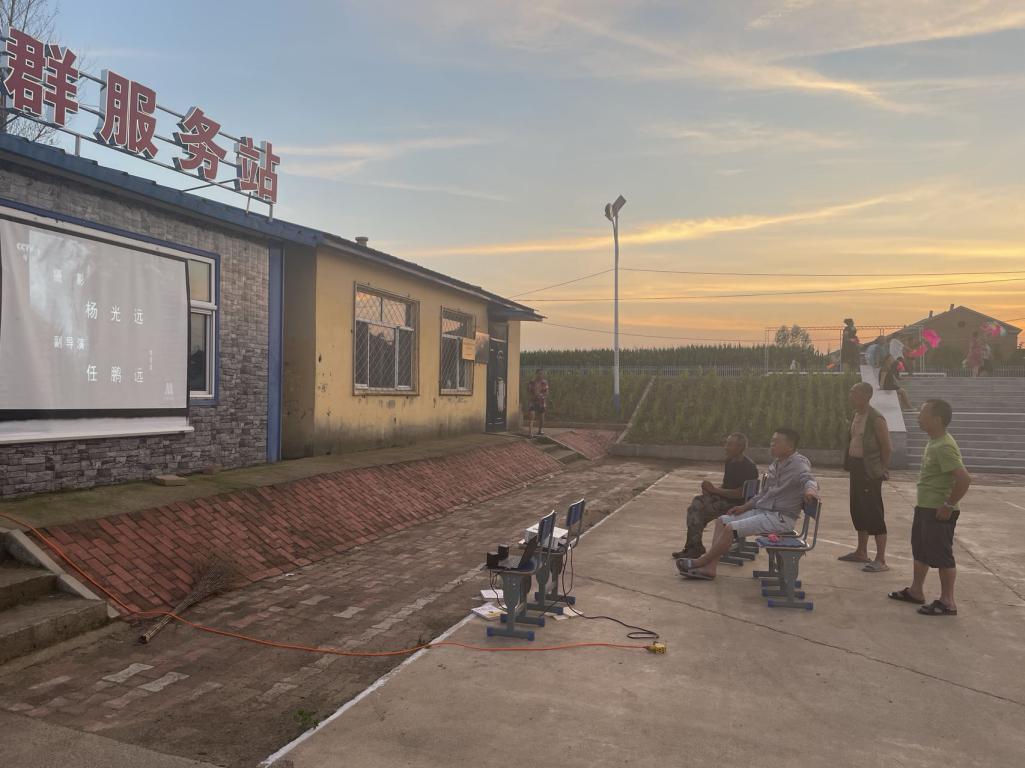 公益電影,點亮鄉(xiāng)村“夜”生活?!叭缃裆钏教岣吡耍m然家家戶戶都有電視機,但我還是十分想念和大家坐在一起邊看露天電影邊討論故事情節(jié)的那種感覺。”農(nóng)閑時節(jié),工作隊在黨群服務(wù)站門前搭建起小型露天電影院。夜幕降臨時,得知要播放電影的村民們紛紛來到這里,搖著蒲扇,嘮著家常,耐心等待電影的放映。一塊幕布,一臺投影儀,一部精彩的紅色電影,為村民們送上了“文化大餐”。近期,工作隊先后為村民們放映了《建軍大業(yè)》《建黨偉業(yè)》《鐵道游擊隊》等電影。