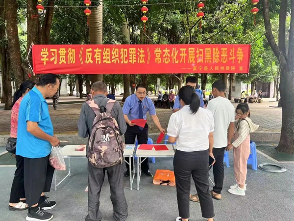 活動現(xiàn)場,檢察干警通過發(fā)放普法資料、宣講典型案例等方式,向過往群眾宣傳《反有組織犯罪法》的內(nèi)容和亮點,用通俗易懂的語言向群眾介紹了有組織犯罪的定義,軟暴力、惡勢力的基本特征,引導(dǎo)群眾充分認(rèn)識反有組織犯罪的重要意義,積極向相關(guān)部門舉報黑惡勢力違法犯罪線索。