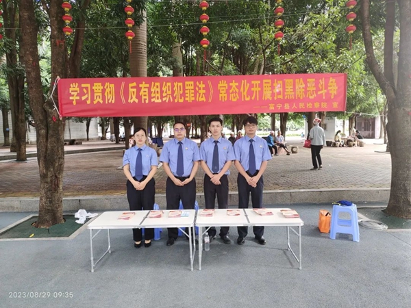為深入推進(jìn)常態(tài)化掃黑除惡斗爭,增強(qiáng)廣大群眾對《反有組織犯罪法》的知曉率,擴(kuò)大《反有組織犯罪法》的影響力,有效預(yù)防和懲治有組織犯罪,營造平安和諧穩(wěn)定的社會環(huán)境。8月29日,云南省文山州富寧縣人民檢察院組織干警到富州廣場開展法治宣傳活動。