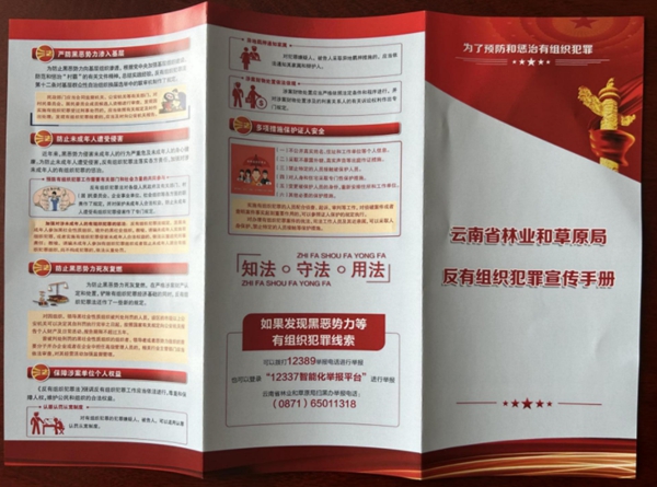 為切實(shí)做好《中華人民共和國(guó)反有組織犯罪法》宣傳工作,推進(jìn)常態(tài)化掃黑除惡斗爭(zhēng)工作的開(kāi)展,8月,云南省林草局多措并舉開(kāi)展《反有組織犯罪法》集中宣傳月系列活動(dòng)。
