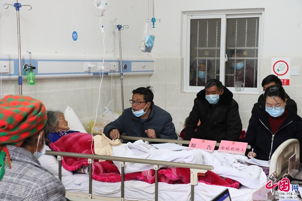 “再難也要堅持,有許多人比你更難?!痹?016年地震恢復(fù)重建期間,李飛鴻在參加由縣總工會主辦的拔河比賽活動中右腳膝蓋全層撕裂,被迫住院治療,出院后經(jīng)鑒定為十級傷殘,但他依然放不下那些急需法律援助的弱勢群體,他拄著雙拐堅持承辦了65件法律援助案件。2018年6月,魯?shù)榭h龍頭山鎮(zhèn)龍泉村大塘社一位姓柏的村民在一次交通事故中嚴(yán)重受傷,雙手被迫截肢,身體重度殘疾,當(dāng)?shù)弥蓭熞?萬元的代理費時,柏某陷入苦楚,向李飛鴻求助,他馬上受理此案。經(jīng)魯?shù)榭h人民法院開庭審理后,以(2018)云0621民初947號判決書判決被告賠償原告柏某各項損失共計562658元。柏某百感交集地說:“真想不到法律援助會這么好!”李飛鴻本著優(yōu)先接待、優(yōu)先指派和優(yōu)先辦理的原則,優(yōu)先調(diào)解不起訴的農(nóng)民工案件。2017年的一天,在魯?shù)榭h云香有限責(zé)任公司大關(guān)人和鉛鋅分公司打工的三位老人(巧家縣王某、彝良縣唐某和孟某)走進(jìn)他的辦公室,滿面愁容地向他傾訴無法得到2013年至2017年的工錢時,他毫不猶豫地代理此案并為其訴訟至法院。當(dāng)三位老人最終得到了97498元的工錢時,他們用樸實的語言“共產(chǎn)黨太好了!無錢還可免費打官司……”表達(dá)著內(nèi)心的感激。2018年,當(dāng)陳某、祖某、耿某、徐某和李某五位農(nóng)民工苦苦追索歷時4年多的勞動報酬無望找到李飛鴻時,他果斷代理此案,為他們挽回經(jīng)濟(jì)損失8.7萬元。在他辦理的贍養(yǎng)糾紛法律援助案件中,有一位85歲體弱多病、生活不能自理的歐姓老人,其7個子女不但不履行贍養(yǎng)義務(wù),還公開辱罵老人。此案被訴至魯?shù)榭h人民法院龍頭山中心法庭。因老人生病尚在龍頭山翠屏村衛(wèi)生院住院,法庭決定到病房開庭審理。在于情于法于理的感化教育下,其子女認(rèn)識到了自己的錯,當(dāng)庭放聲大哭,紛紛表示一定要履行好贍養(yǎng)老人的義務(wù)??吹嚼先说馁狆B(yǎng)問題有了結(jié)果,旁聽的群眾都說:“開庭一件,教育一片,法律為弱勢群體撐起一片藍(lán)天”。李飛鴻在做好本職工作的同時還不忘做好事。2014年8月3日,魯?shù)榭h龍頭山發(fā)生強烈地震,他第一時間與同事一起徒步進(jìn)入災(zāi)區(qū)參與抗震救災(zāi)。在龍頭山沙壩村徐家梁子核實災(zāi)情時,他把身上僅有的200元現(xiàn)金給了一位五保戶老人,老人流下了感動的淚水。