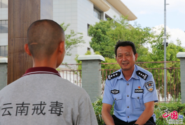 陳映斌作為云南大學(xué)的大學(xué)生,90年畢業(yè)后就從昆明來到地處偏僻、條件艱苦的大坪壩,自己也沒想到會在這片熱土上深深扎根于司法行政事業(yè)。從警32年里,他有二十余年的時間都奮戰(zhàn)在管理教育崗位,用心用情投入到對管理人員的教育戒治工作中。2022年5月,他偶然在街頭看到一對母子向他打招呼,仔細(xì)辨認(rèn)后他才發(fā)現(xiàn)是十多年前在大隊(duì)管理過的艾滋病戒毒人員。當(dāng)時這名戒毒人員曾割腕自殺,陳映斌快速趕到現(xiàn)場,看到鮮血直流的手還未做任何保護(hù)措施,就直接撕破床單對傷口進(jìn)行包扎,迅速送往醫(yī)院搶救。面對身體在康復(fù)但心理仍抗拒的戒毒人員,他知道要打開這道緊閉的“大門”并不容易,但依然用真誠和耐心進(jìn)行思想引導(dǎo)、心理疏導(dǎo),幫助其重塑生活信心,最終其表現(xiàn)良好提前3個月解除強(qiáng)戒。在管教崗位上他積極探索實(shí)踐新方法,曾在所內(nèi)率先運(yùn)用《弟子規(guī)》等優(yōu)秀傳統(tǒng)文化開展教育矯治,又率先在省內(nèi)戒毒場所對艾滋病戒毒人員集中管理進(jìn)行探索,帶頭深入到艾滋病戒毒人員中開展教育管理及咨詢服藥等工作。