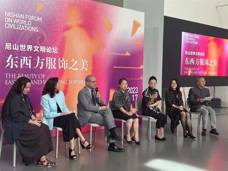其中,“尼山世界文明論壇·東西方服飾之美分論壇”活動作為2023尼山世界文明論壇的重要組成部分,邀請到中國與意大利知名高校負(fù)責(zé)人、研究學(xué)者、設(shè)計(jì)師和行業(yè)管理者,圍繞東西方服飾之美的特征、相互借鑒與應(yīng)用設(shè)計(jì)、傳播推廣等主題開展主旨演講,同時還邀請藝術(shù)家、設(shè)計(jì)師以及媒體大咖圍繞文化-藝術(shù)-設(shè)計(jì)-生活方式等話題進(jìn)行了圓桌對話,讓體現(xiàn)中國“天人合一”“道法自然”的古典東方美學(xué),與意大利“綺麗高雅”“潮流時尚”的現(xiàn)代西方美學(xué)在此相遇相知?!拔迳惠x,相得益彰;八音合奏,終和且平”。中西方服飾文化在相互交流、互鑒、融合中大放異彩。
